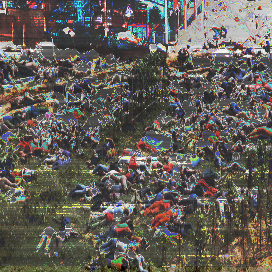 >>372>Wasn't that middle one finished a long time ago?It was and it wasn't; the sorts on the rubble in the background weren't nearly as abrasive, and the vibrancy of the colors not nearly as high. It's what led me to start a series almost exactly a year ago, but I've been in an artist's block ever since.. namely because I haven't been able to get over some personal struggles, namely my inability to avoid appropriating works shown in photoessays from geopolitical conflicts around the globe, like the Aleppo one you're referring to. I revisited them in an effort to round out my portfolio for the end of the year; but overall, I've grown less and less enthusiastic about my typical process.