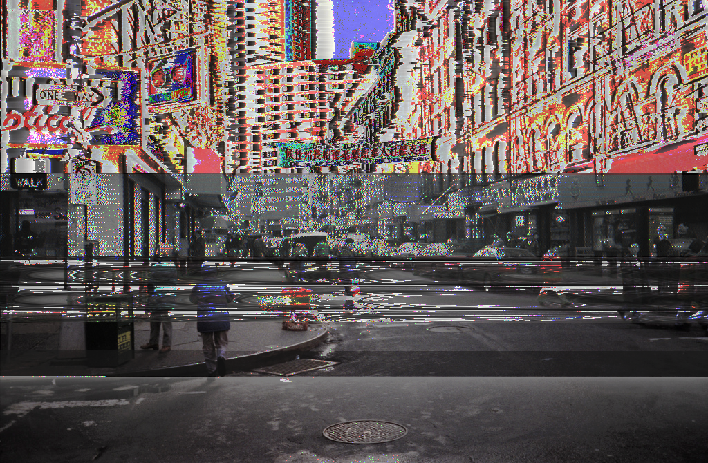 >>310Normally I detest amateur glitch art threads for looking too homogeneous and using the same three or so methods (as opposed to stuff like, say, Rob Sheridan's glitch art which does something unique with it), but this actually looks neat.