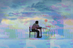 >>322That image of the guy sitting in his desk staring at the sky always had me intrigued. Pretty good take on it with the glitch art.