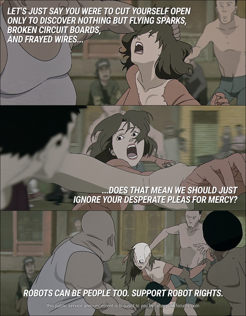 But, I am pretty sure that if I were an android in today's world, I would be very discerning about who I let know I was not human, and I would be paranoid about others discovering that fact. Not everyone is an asshole, but enough ignorant, nasty, and insecure people seek and exploit those who lack the power to retaliate. As an android, a minority that many people no doubt would hesitate to grant rights to, it would be imperative to not let that minority status be reviled.
