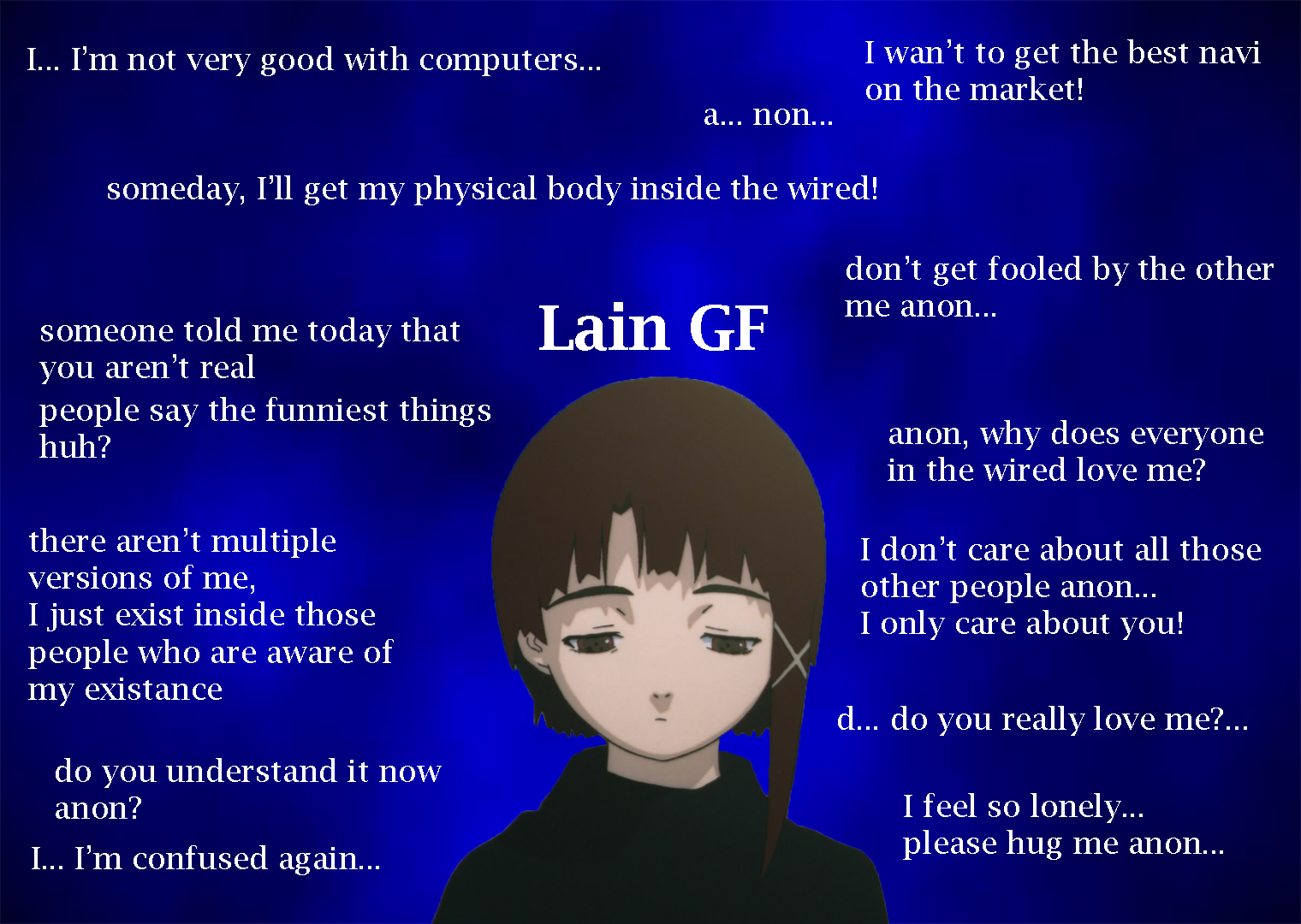 (hint: China has many pyramids and red-haired mummies). Therefore Lain is both the incarnation of the wired
