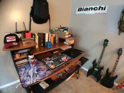 I ordered a custom mousepad, but I quit gaming recently so I reduce back to no mousepad/trackball.