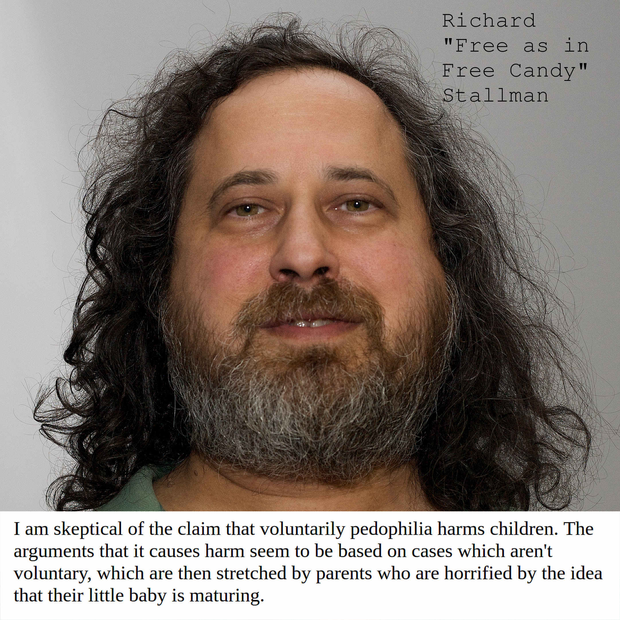 Stallman has nothing to do with technology, if anything, he is the moses of free Licensing. And I'm not sure about the "free" part. The fact that he uses that word for his particular flavor of restrictiveness doesn't make it free. I'd very much replace "free" with share-alike and then we're getting closer to using the right words for things.